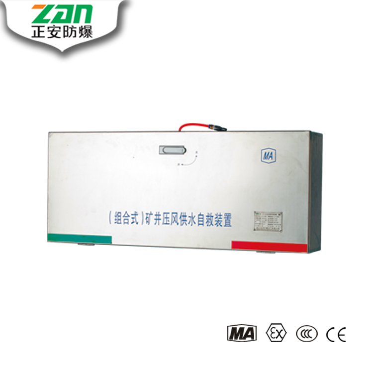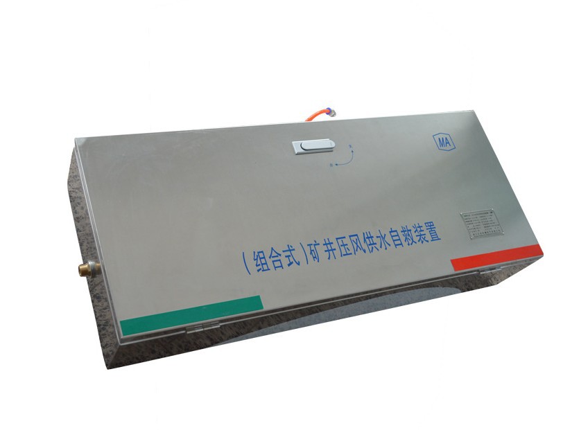 該產(chǎn)品是組合設(shè)計(jì),具有供風(fēng),供水兩種功能和減壓,風(fēng)量調(diào)節(jié),消音,排除積水,防塵防水,安裝簡(jiǎn)單,使用便捷等特點(diǎn)。該裝置由地面供風(fēng),供水,內(nèi)裝6個(gè)呼吸面罩和6支飲水軟管,可同時(shí)供6位避災(zāi)人員使用。