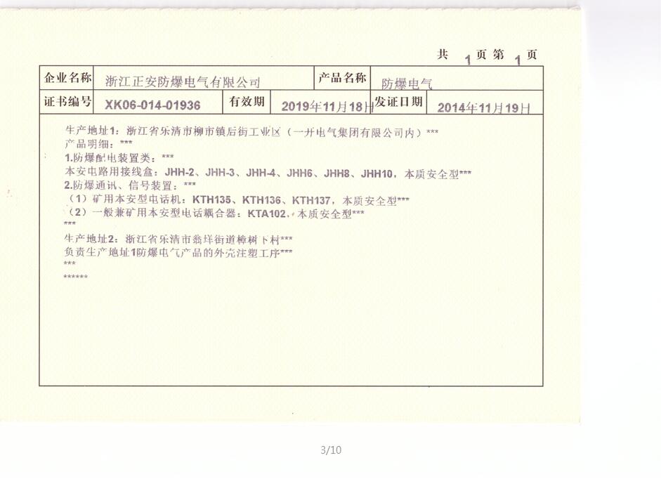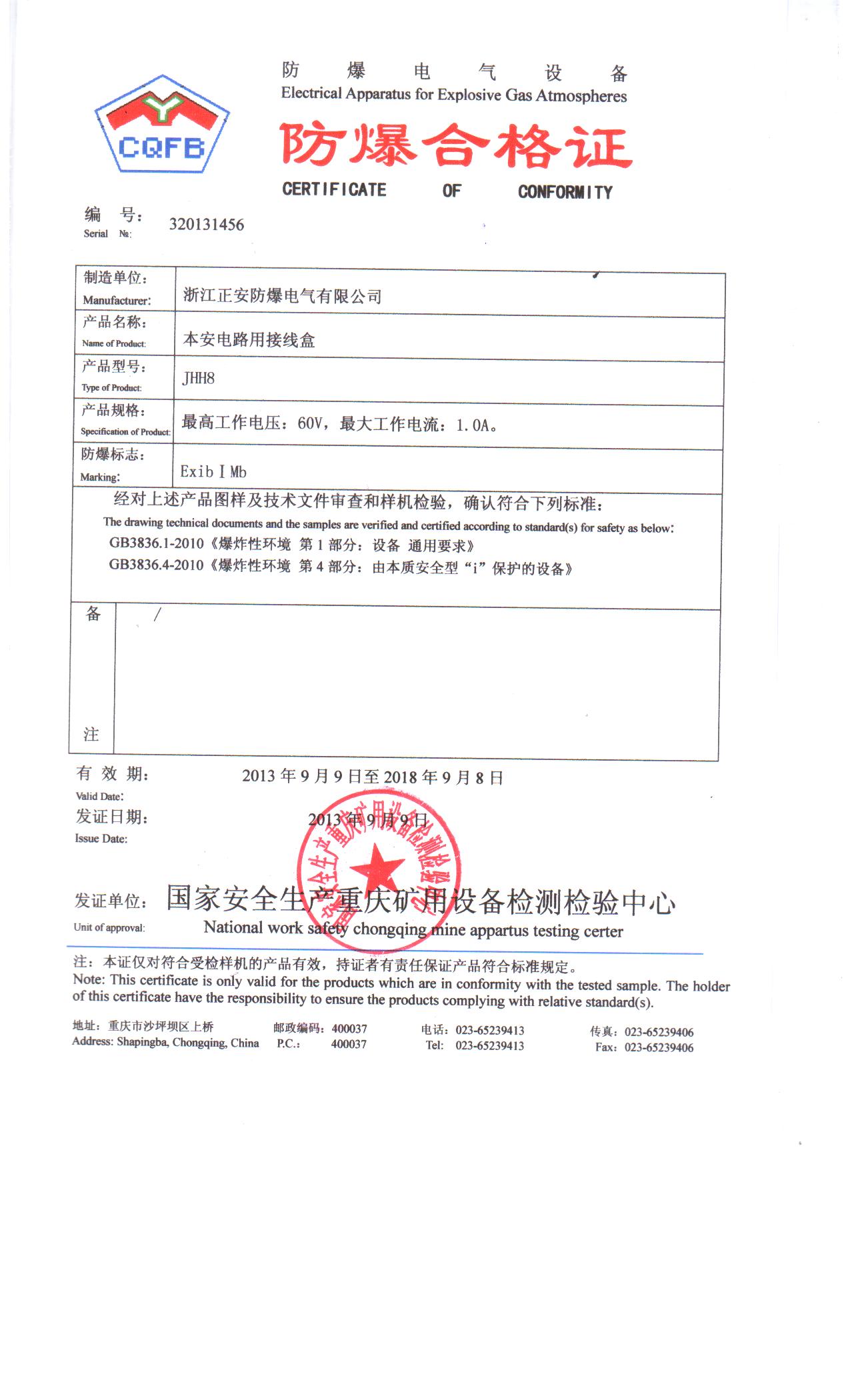 JHH8防爆合格證
