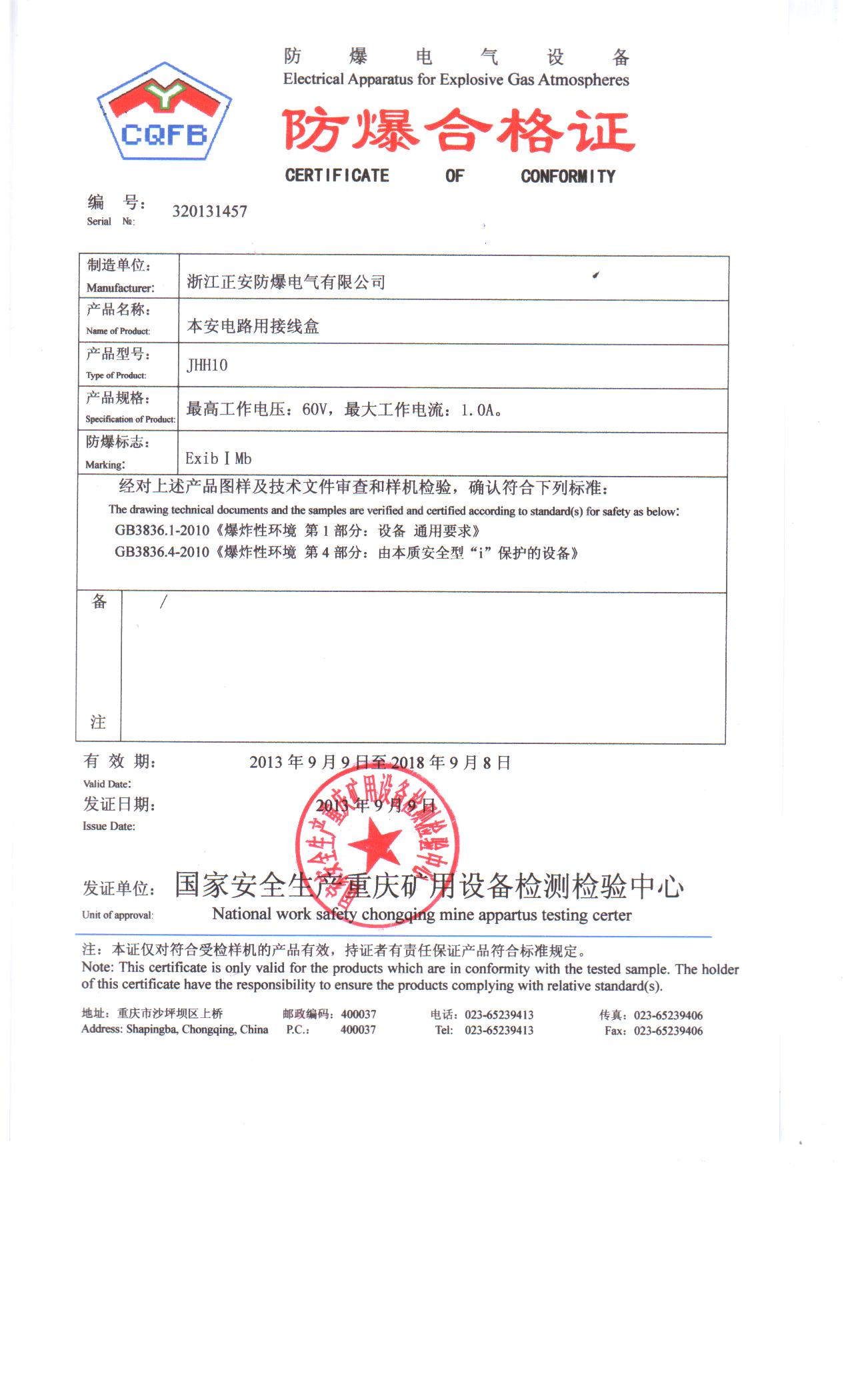 JHH10防爆證