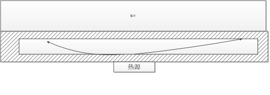 如圖所示:點(diǎn)熱源在底部,散熱器底板變成空腔。當(dāng)點(diǎn)熱源啟動(dòng),腔內(nèi)工質(zhì)受熱蒸發(fā)變成氣體攜帶熱量,跑向冷端;遇冷凝結(jié)釋放熱量再回流;